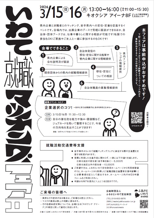 3/16「いわて就職マッチングフェアⅡ」に参加します